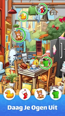 De gameplay is heerlijk eenvoudig: jouw missie is het lokaliseren van een reeks zorgvuldig verborgen objecten binnen elke unieke illustratie. Tik simpelweg op wat je vindt om je vooruitgang te boeken en beloningen te verzamelen naarmate je elk raadsel voltooit. Met een rijke variëteit aan visuele stijlen, van speelse cartoonwerelden tot charmante vintage settings, is er altijd iets nieuws te ontdekken. Verken boeiende omgevingen zoals de gezinsdrukte van 'The Smiths', de speelse chaos van 'Doodle Delight', het mysterieuze 'Mystery Meow' en de uitdaging van een opruimactie in 'Tidy Up'. Elk level is een kunstwerk op zich, ontworpen om je volledig onder te dompelen.