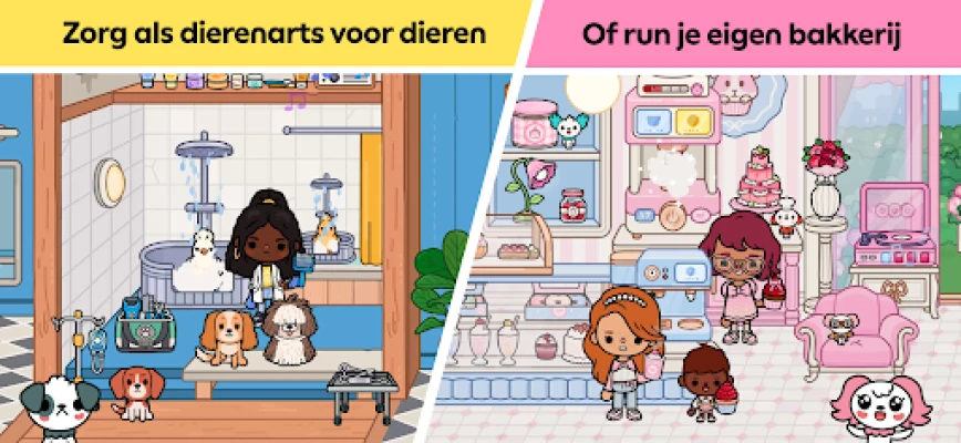 Duik in de ongekende vrijheid van Toca Boca World, het ultieme creatieve speelparadijs waar jouw fantasie de hoofdrol speelt. Bedenk je eigen verhalen en beleef eindeloze avonturen; of je nu droomt van een carrière als leraar, dierenarts of zelfs een hippe influencer, de mogelijkheden zijn onbegrensd. Geef vorm aan je eigen unieke personages met de uitgebreide Personagedesigner, waarin je elk detail van kapsel tot accessoires kunt personaliseren. Transformeer daarna je omgeving tot in de puntjes met het intuïtieve Woninginrichting-hulpmiddel, waarbij je uit een rijk palet aan meubels en kleuren kiest om een perfect huis, een bruisende winkel of een knusse camper te creëren, inclusief de steeds groeiende reeks nieuwe locaties.