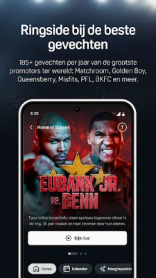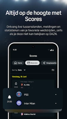 Maar DAZN is meer dan alleen kijken; het is meedoen. Duik in de FanZone en verbind met gelijkgestemde fans, deel je opwinding en vier samen elke overwinning alsof je erbij bent. Dankzij een verfijnde navigatie ontdek je moeiteloos je favoriete sporten en competities, terwijl ons gedetailleerde programma je herinneringen laat instellen voor belangrijke evenementen. Blijf voortdurend op de hoogte met real-time scores, herinneringen en statistieken, zelfs voor wedstrijden die buiten DAZN vallen. Voor vechtsportliefhebbers biedt DAZN diepgaande fight cards en de mogelijkheid om gemiste rondes of complete gevechten opnieuw te beleven, waardoor elke adrenalinekick wordt gegarandeerd.