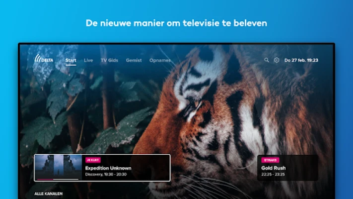 Met de TV app van DELTA geniet je thuis van je favoriete programma's en series op je Smart TV. Kijk uitzendingen tot 7 dagen terug of start eenvoudig vanaf het begin met 'Begin Gemist'. Jouw tv-beleving, jouw regie.