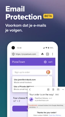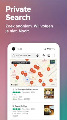 De toewijding van DuckDuckGo aan jouw privacy is absoluut, en dat strekt zich uit tot elk facet van onze dienstverlening. Zelfs als het gaat om de advertenties die soms verschijnen bij privézoekopdrachten, blijft jouw anonimiteit gewaarborgd. DuckDuckGo werkt samen met Microsoft voor deze advertenties, maar garandeert dat het bekijken ervan geheel anoniem is. Microsoft heeft expliciet toegezegd de advertentieklikken van onze gebruikers niet te gebruiken om persoonlijke profielen aan te maken, wat een ongekend niveau van vertrouwen en privacy in het advertentielandschap biedt. Kies voor DuckDuckGo en omarm een internetervaring waarin jij centraal staat, beschermd tegen ongewenste blikken en digitale profilering. Het is tijd voor échte privacy.
