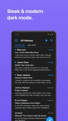 Voelt uw inbox vaak als een onoverzichtelijke chaos die kostbare tijd opslokt? Edison Mail is speciaal ontwikkeld om u de controle terug te geven, zodat u zich kunt richten op wat echt belangrijk is. Deze intuïtieve app voor Android-apparaten is uw sleutel tot een stressvrije e-mailervaring, vakkundig ontworpen om uw dagelijkse e-mailbeheer te stroomlijnen. Het is niet voor niets dat Edison Mail erkend werd in het Google Play Store 2017 Android Excellence Program en geprezen wordt door techgiganten zoals TheVerge voor zijn snelheid en CNET voor het scheppen van orde.