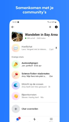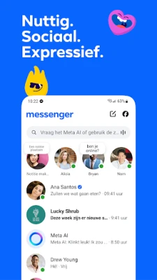 Messenger is dé gratis berichtenapp om overal verbinding te maken. Blijf eenvoudig in contact met vrienden en familie, vind gelijkgestemden voor je interesses en bouw je eigen community. Deel je momenten en emoties, voorbij alleen tekst.