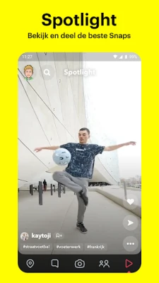 Snapchat biedt meer dan alleen persoonlijke interactie; het is een venster op een bredere wereld. Ontdek Spotlight, de plek voor de meest boeiende en trending Snaps, waar je je eigen creaties kunt insturen of kunt genieten van de inzendingen van anderen. Verken de Kaart om te zien waar vrienden uithangen (als ze hun locatie delen) en duik in Live-Verhalen uit je directe omgeving of van over de hele wereld. Koester je favoriete herinneringen onbeperkt in Herinneringen, bewerk ze en deel ze opnieuw, of creëer complete Verhalen om je mooiste momenten te bewaren.