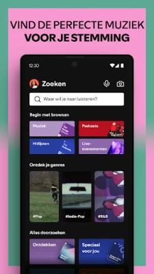Stap binnen in de dynamische wereld van geluid met Spotify, uw persoonlijke audio-universum waar elke melodie en elk verhaal tot leven komt. Verken een onmetelijke collectie aan nationale en internationale tracks, van de nieuwste releases tot tijdloze klassiekers, en duik in een rijkdom aan fascinerende podcasts. Spotify biedt u de vrijheid om zorgvuldig samengestelde afspeellijsten te ontdekken of om met gemak uw eigen unieke verzamelingen te creëren en te delen met vrienden. Ontdek bovendien realtime waar uw vrienden naar luisteren en werk samen aan gedeelde afspeellijsten voor een nog rijkere muzikale reis.